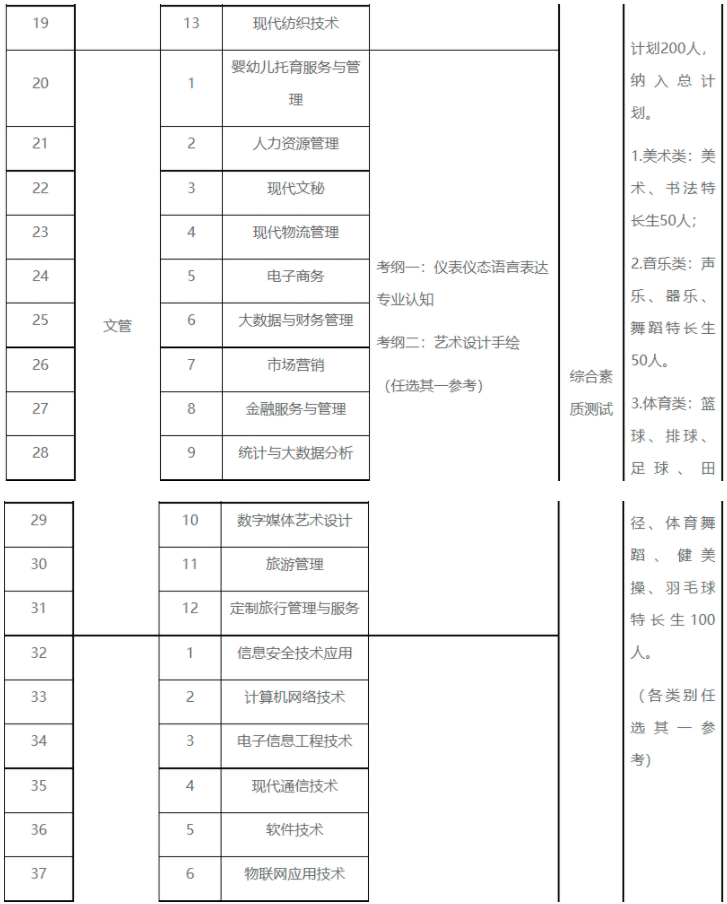 注: 有色盲色弱、轻度听力障碍考生慎重填报铁道工程技术、铁道供电技术、铁道信号自动控制、铁道机车运用与维护专业;所有单招专业与计划以省教育考试院公布为准。